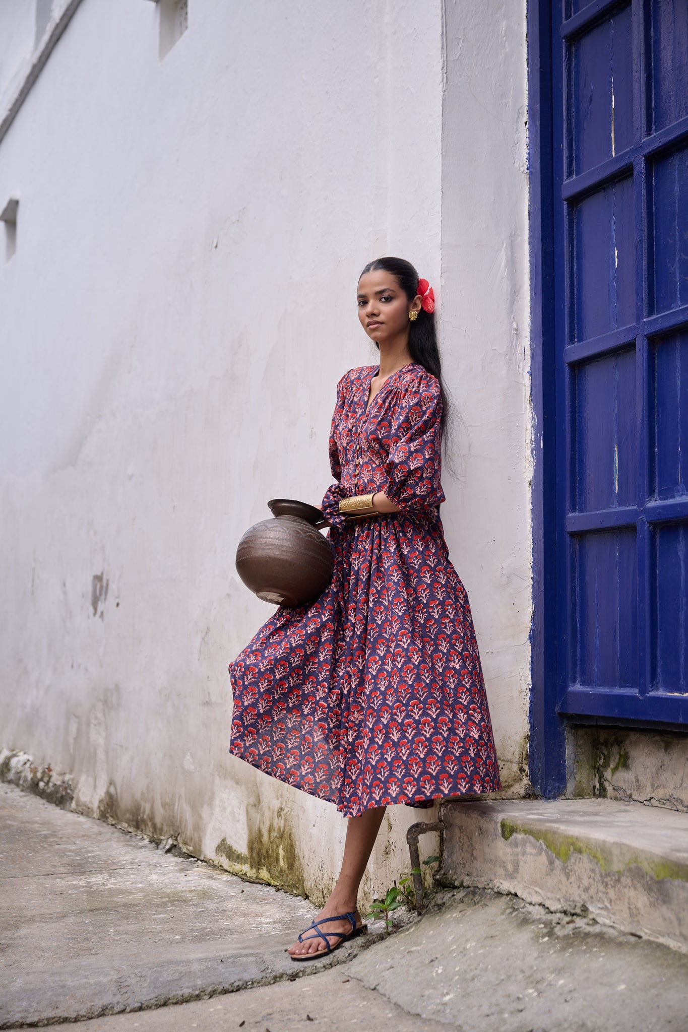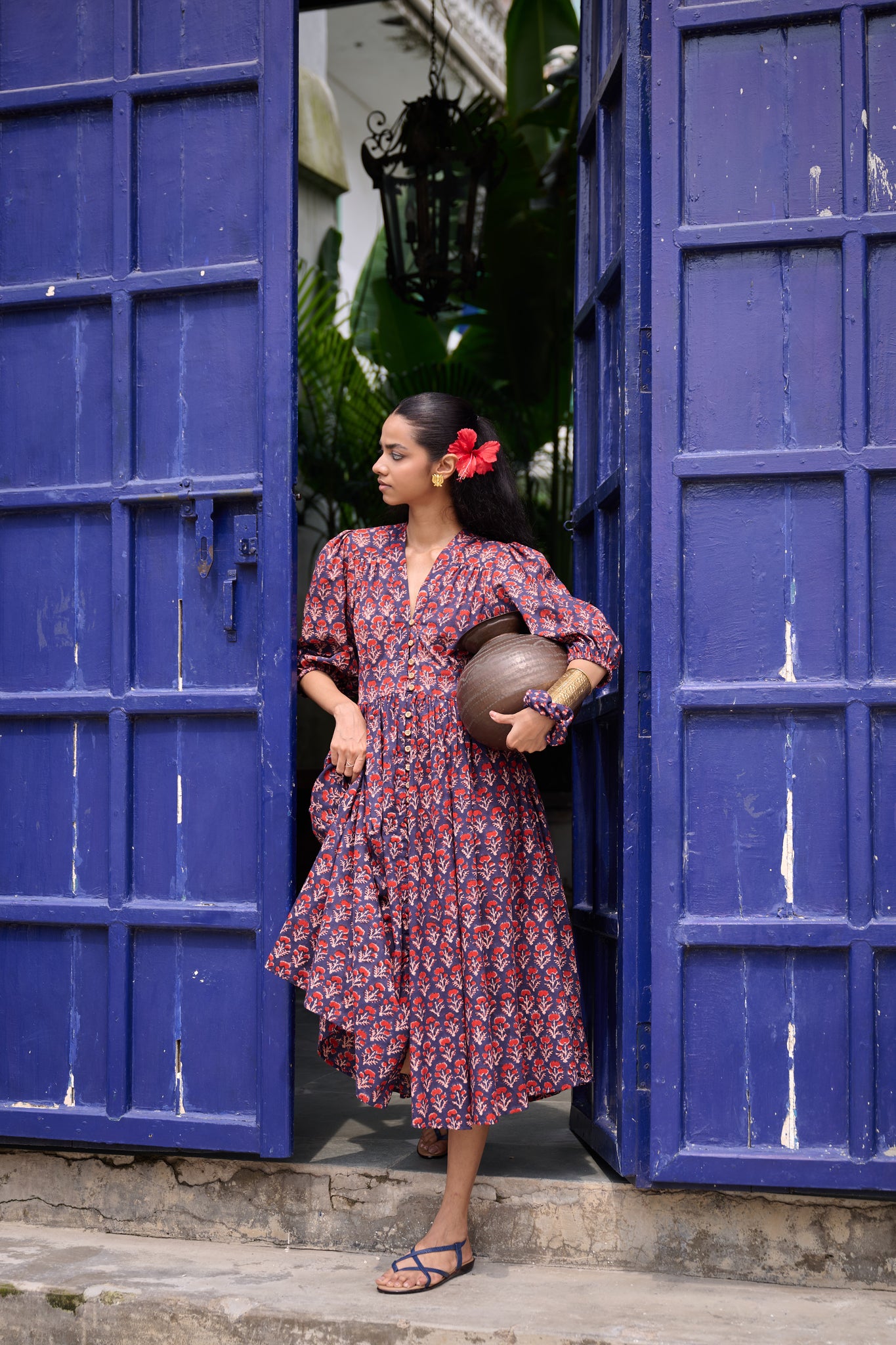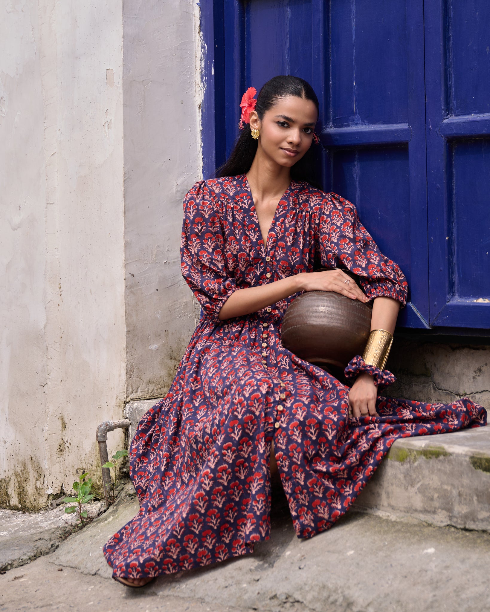 DISCLAIMER - please note this is a special artisanal product which is traditionally hand blockprinted. Irregularities in the print are characteristic of such printing. The fabric gets softer over wash but the print can fade slightly over the years! Minor measurement discrepancies are possible as these are made by hand.