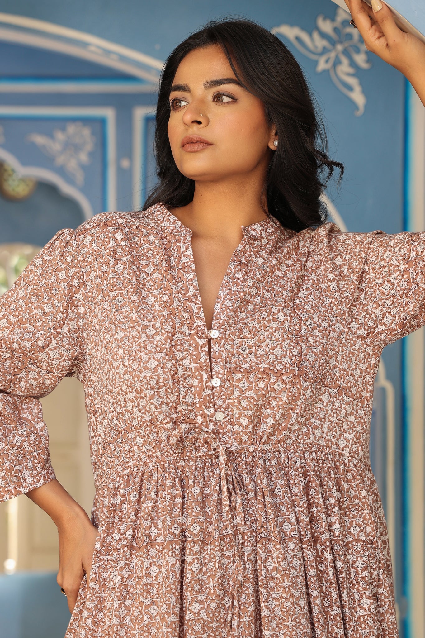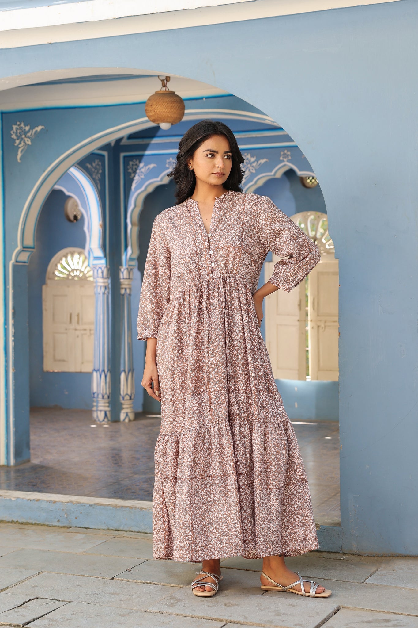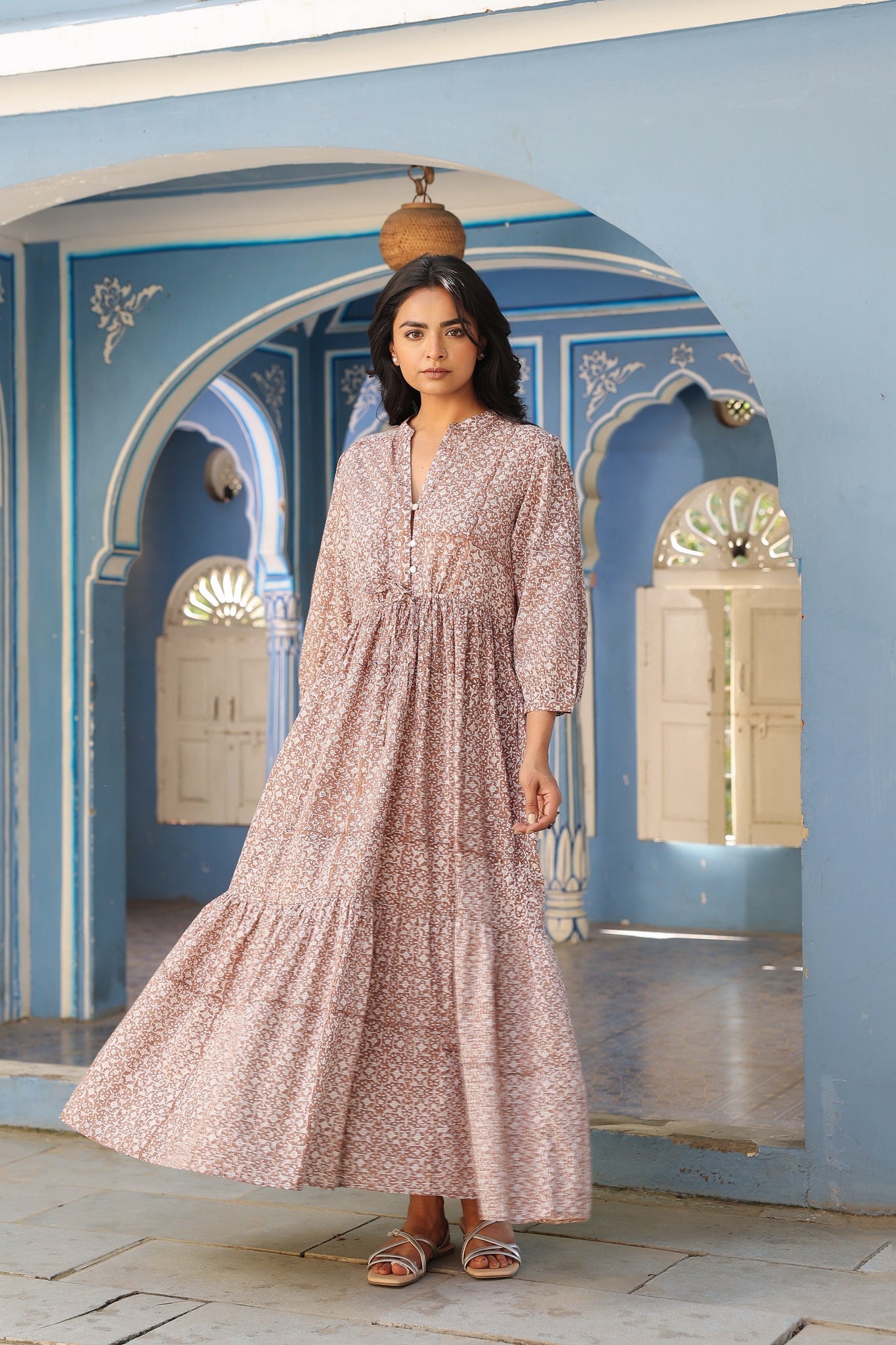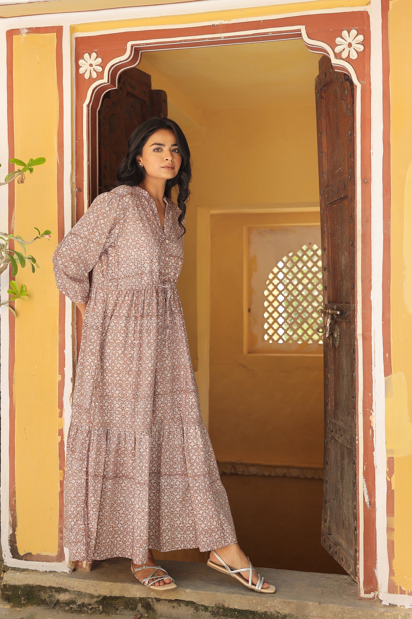 Hand block printed cotton maxi dress, tiered , adjustable drawstring at waist and of course it has pockets!!