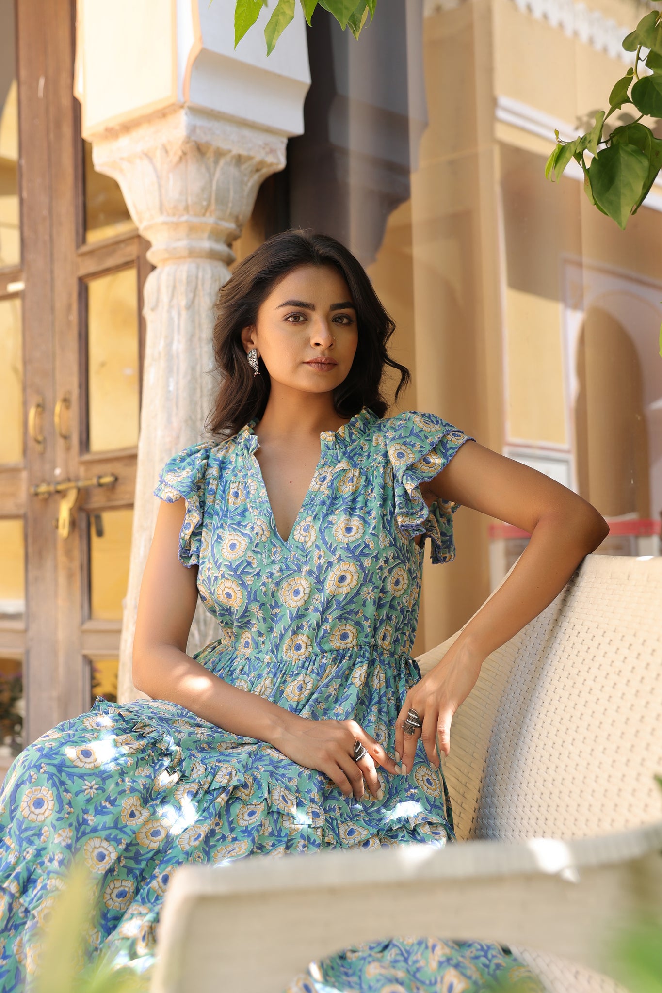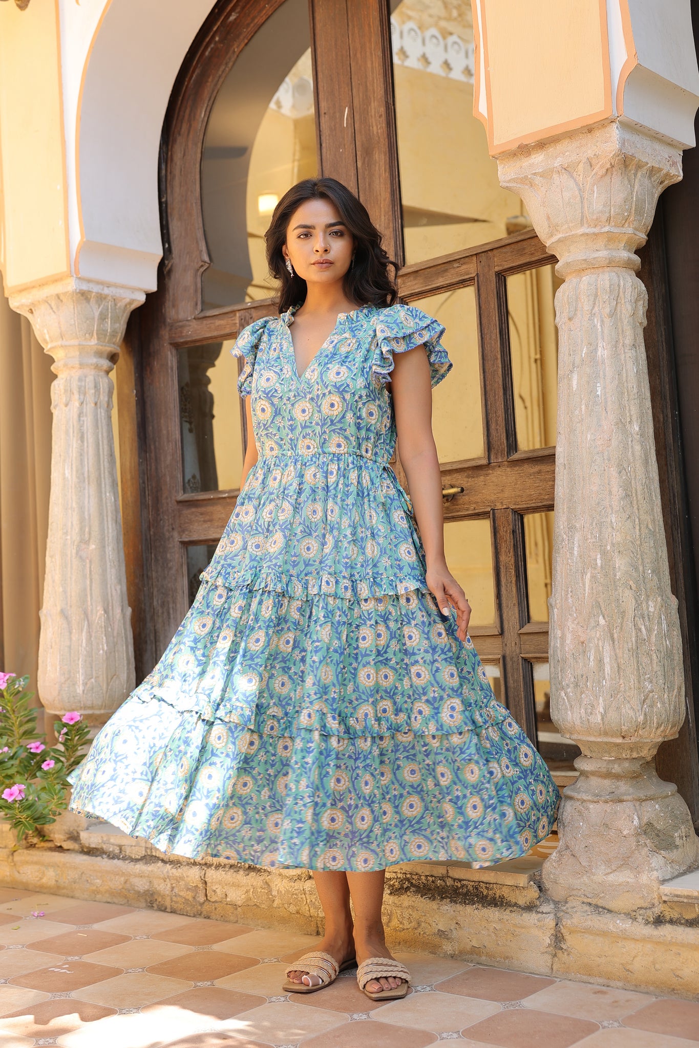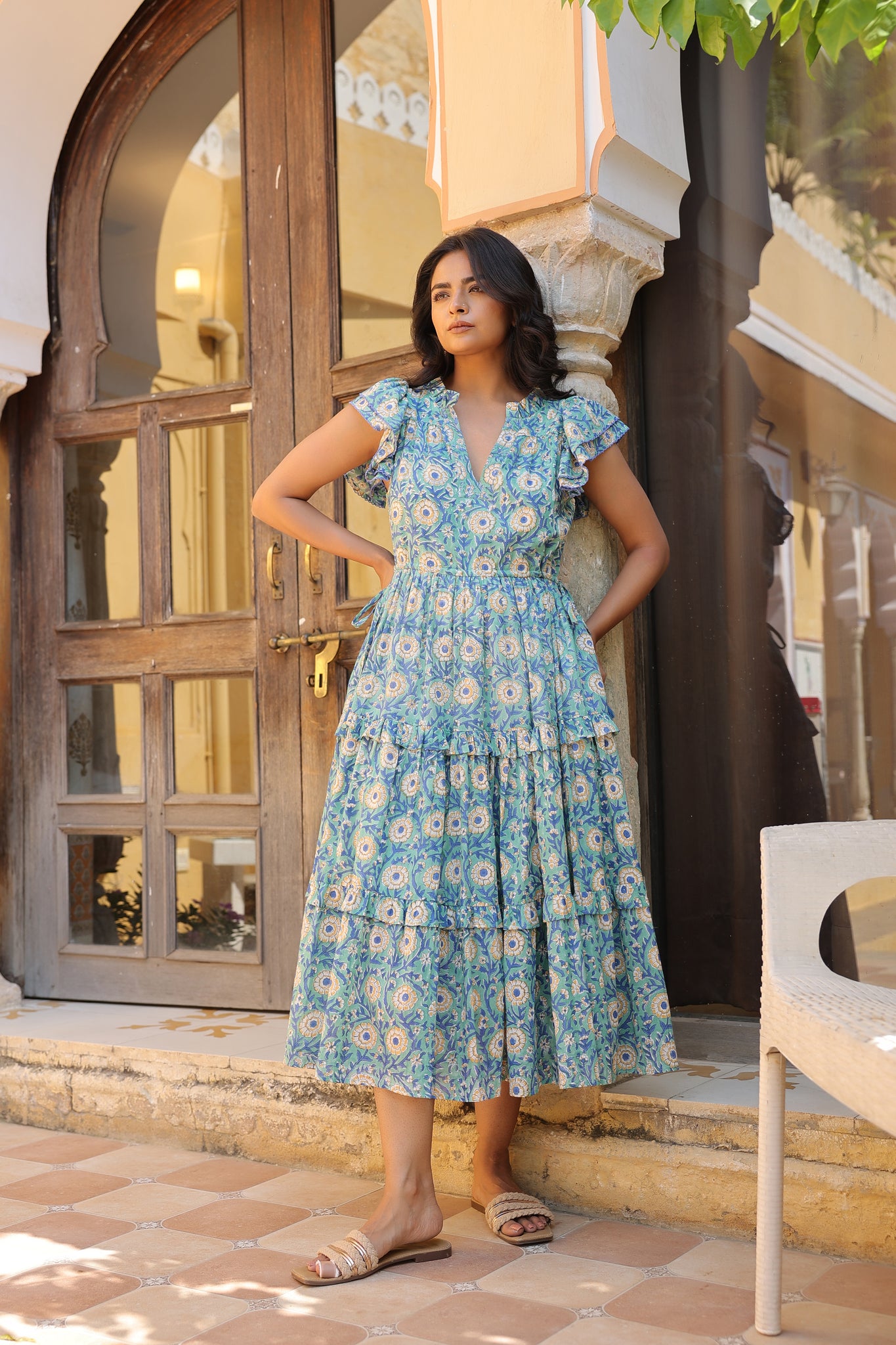 ruffled tiers , ruffled sleeves, adjustable waist and it has pockets too! the skirt is lined!