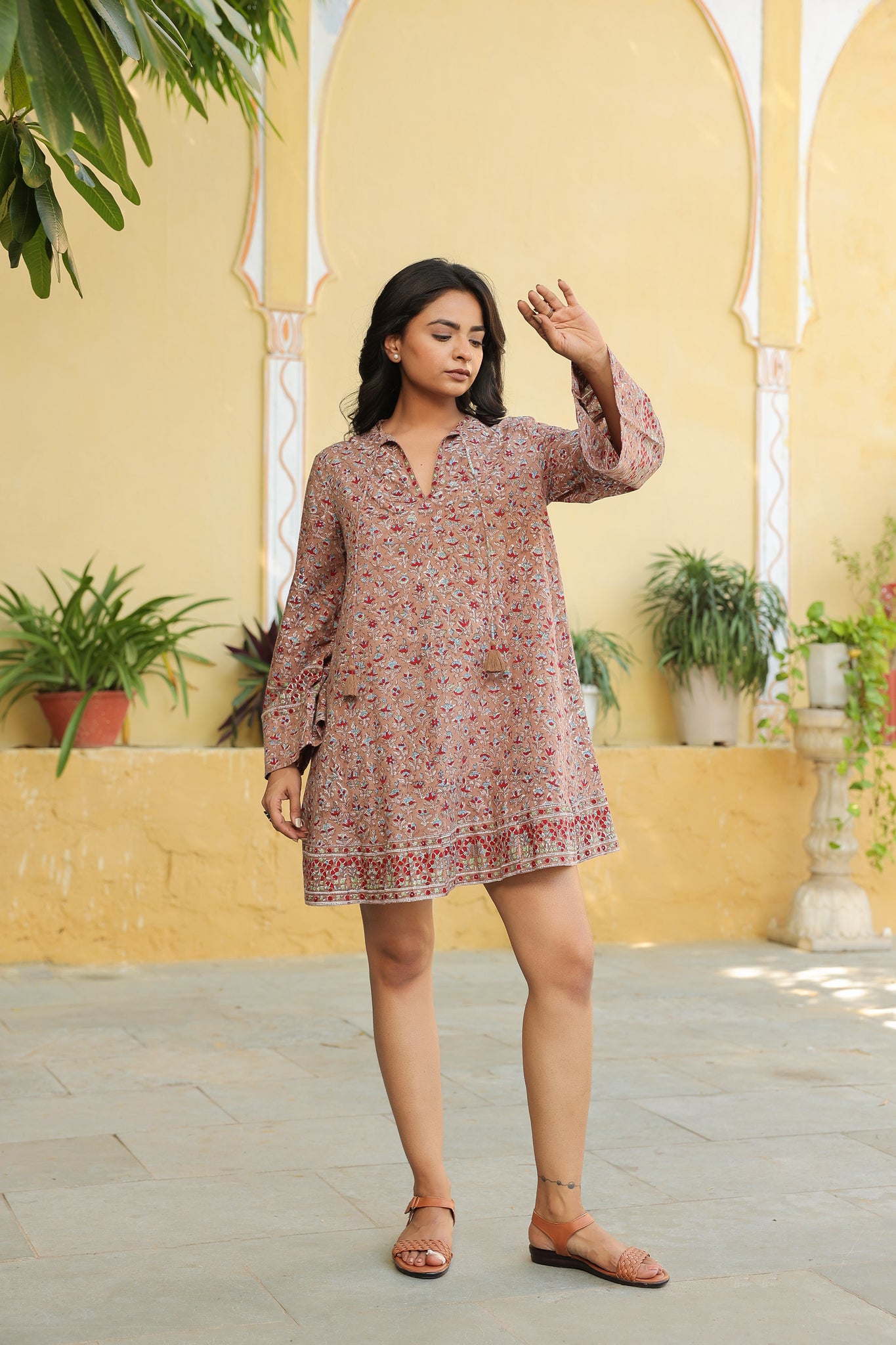 The relaxed, boho, a-line dress reminds you of the 1960s! Fully lined, contrasting hem, bell sleeves & of course it has pockets!