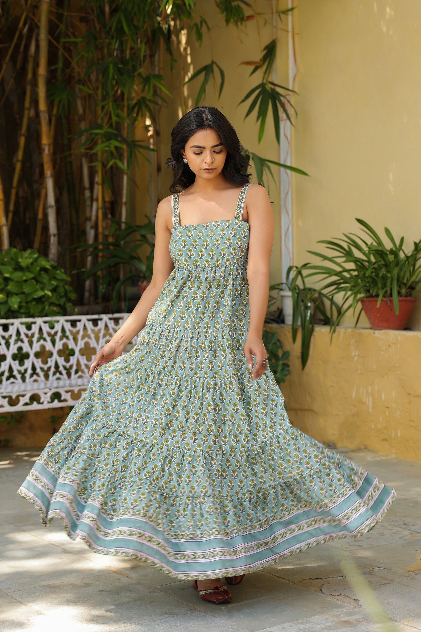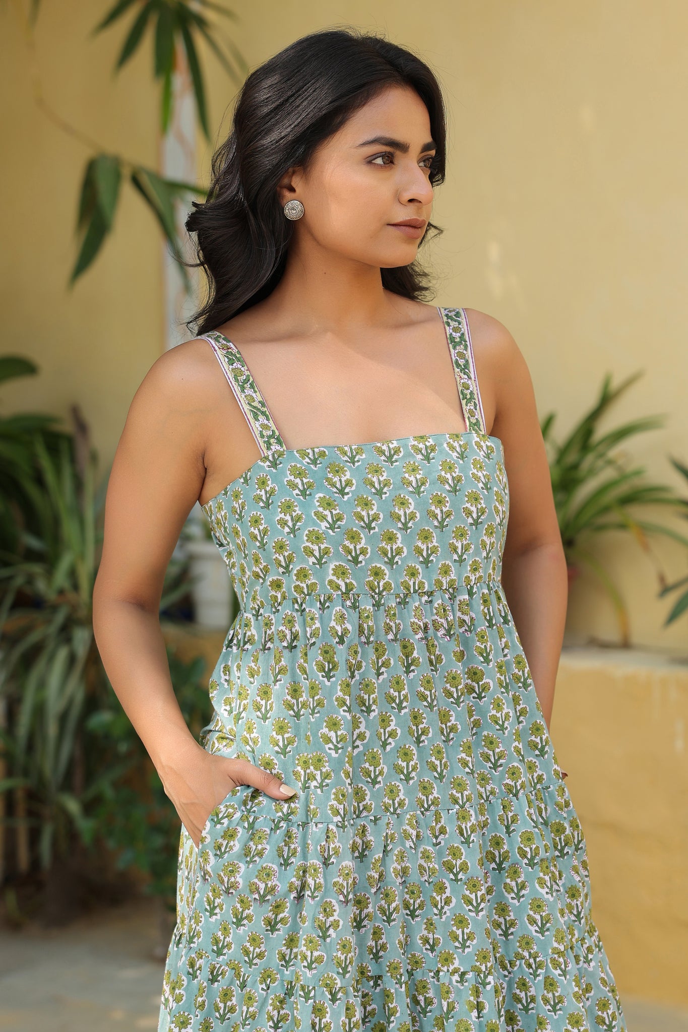 Easy breezy summer dress in a beautiful soft green print. Unlined, super soft , perfect for the all day long look.