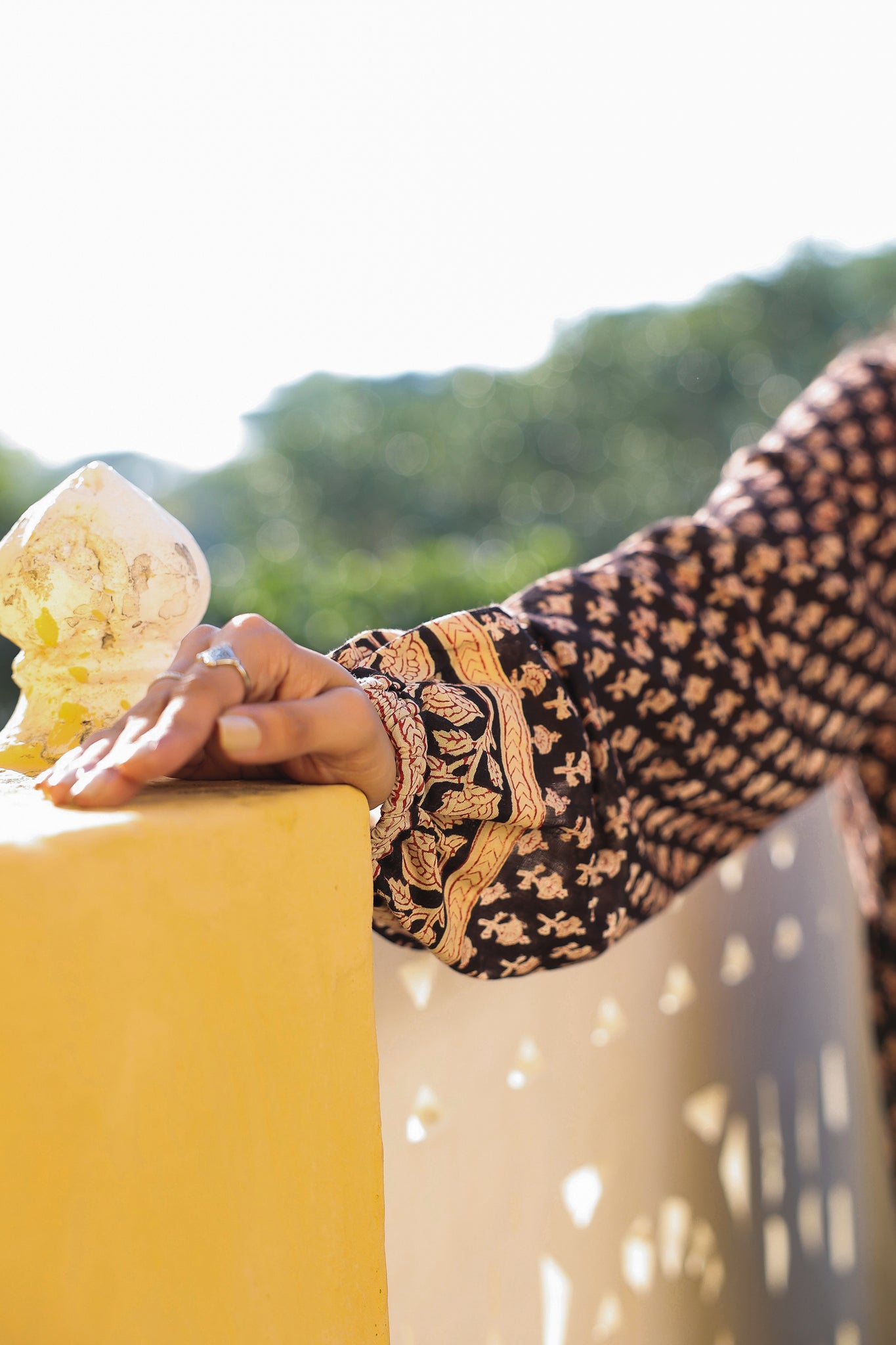 Easy breezy summer dress in a beautiful black bagru block print. Unlined, super soft , perfect for the all day long look. Slips over easily. Machine wash cold 30degrees, dry in shade.