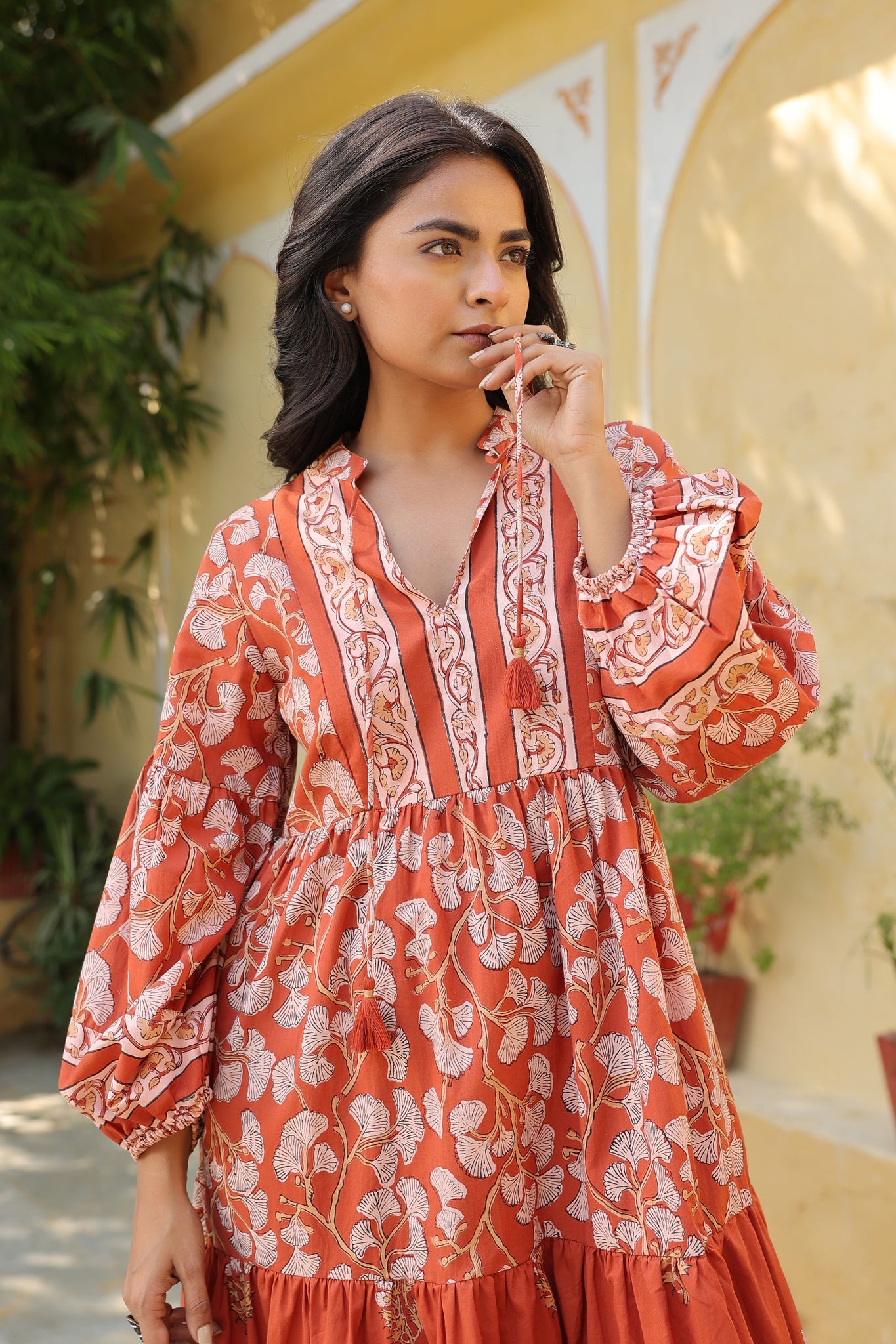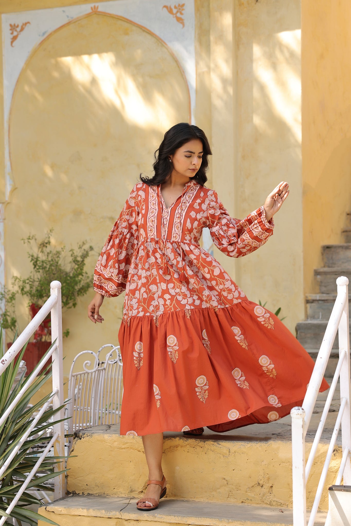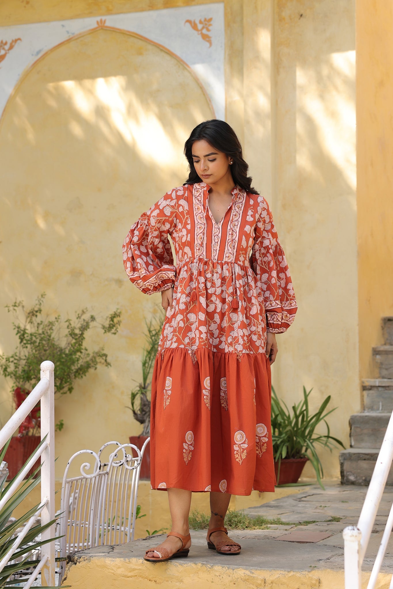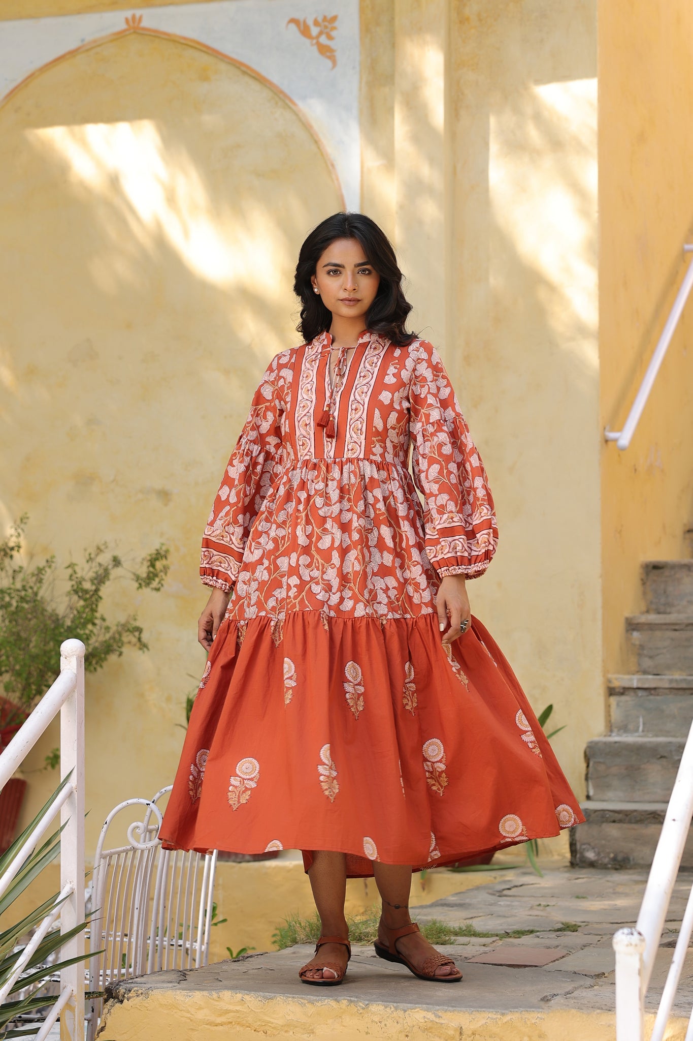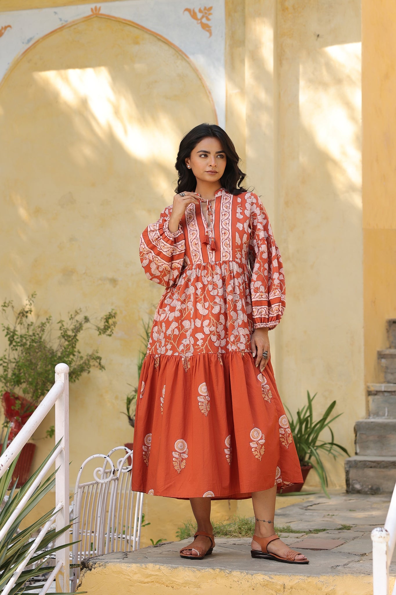 Easy breezy super soft cotton maxi - block printed by hand. Tassel ties at front. Pockets at side seam.