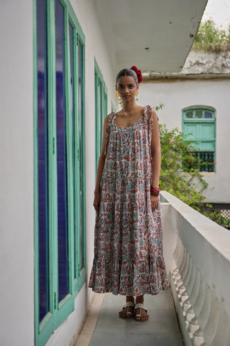 the CILANTRO midi - brown with red and pink floral