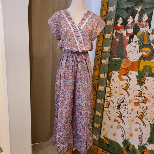 JUMPSUIT - grey w/ mauve floral