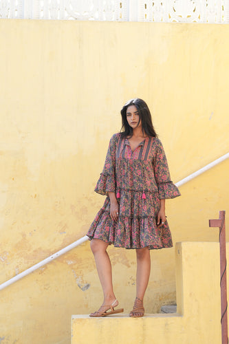 The STEVIA dress - Charcoal grey w/ Fuschia floral