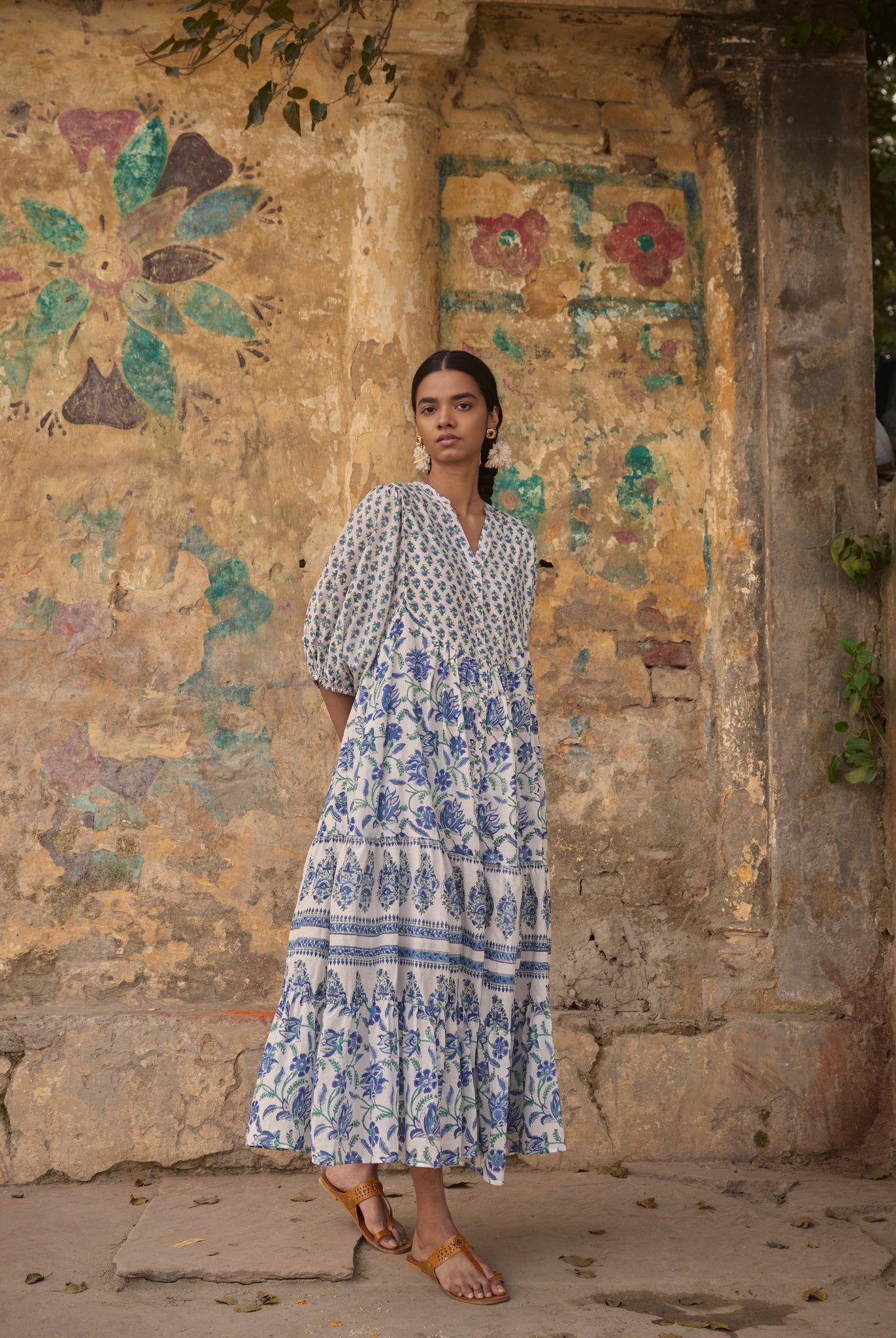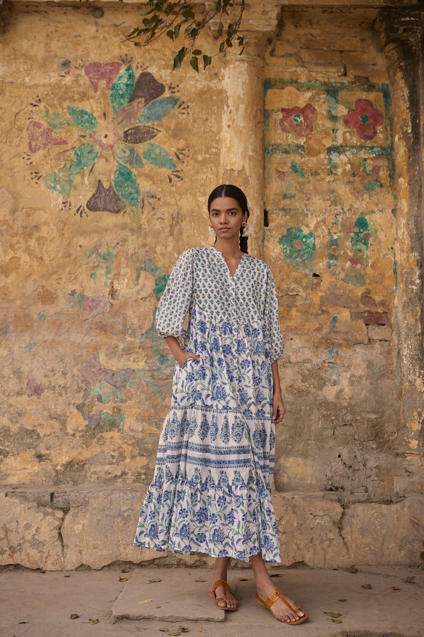 the CHILLI maxi - white and blue floral