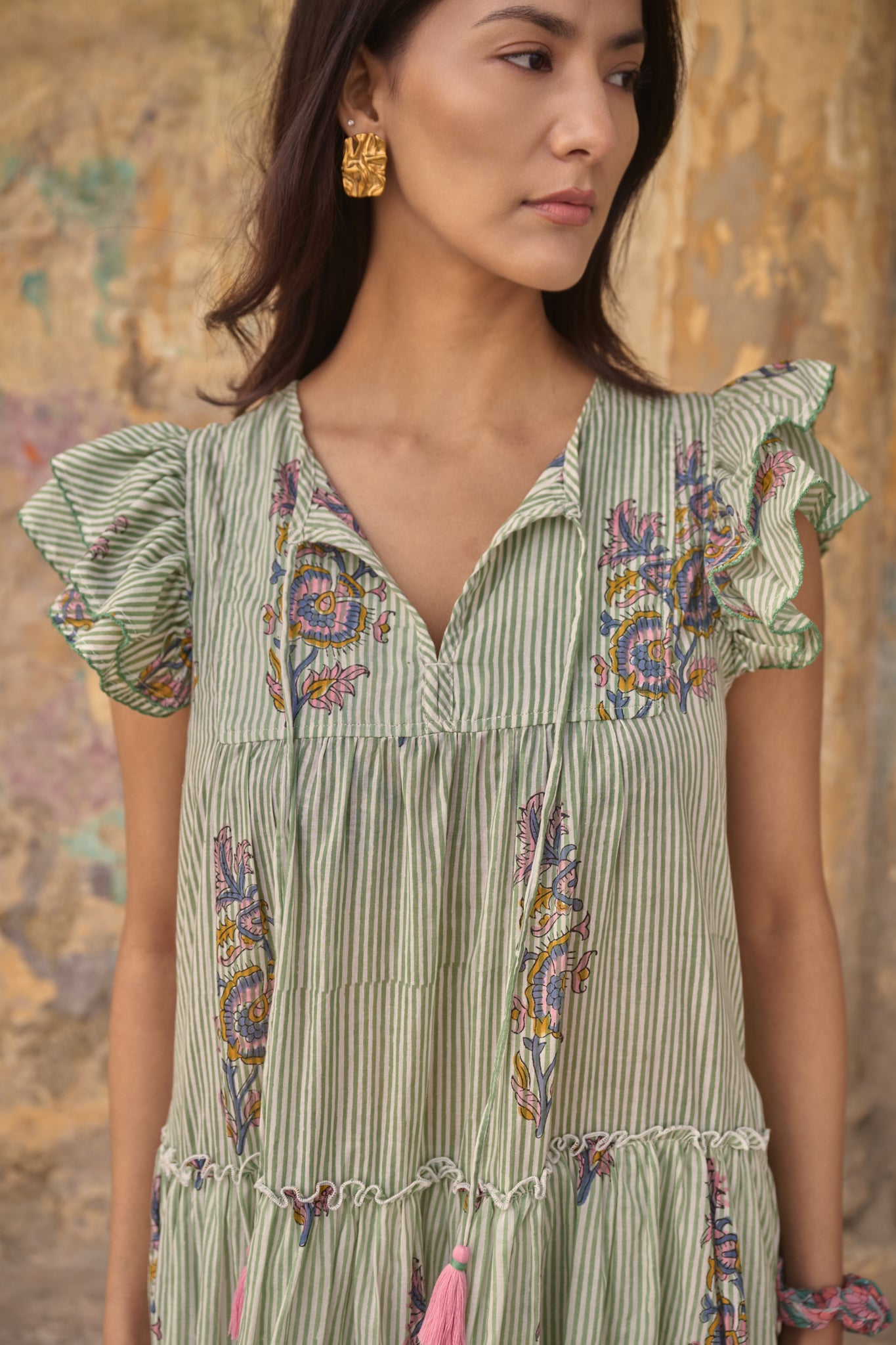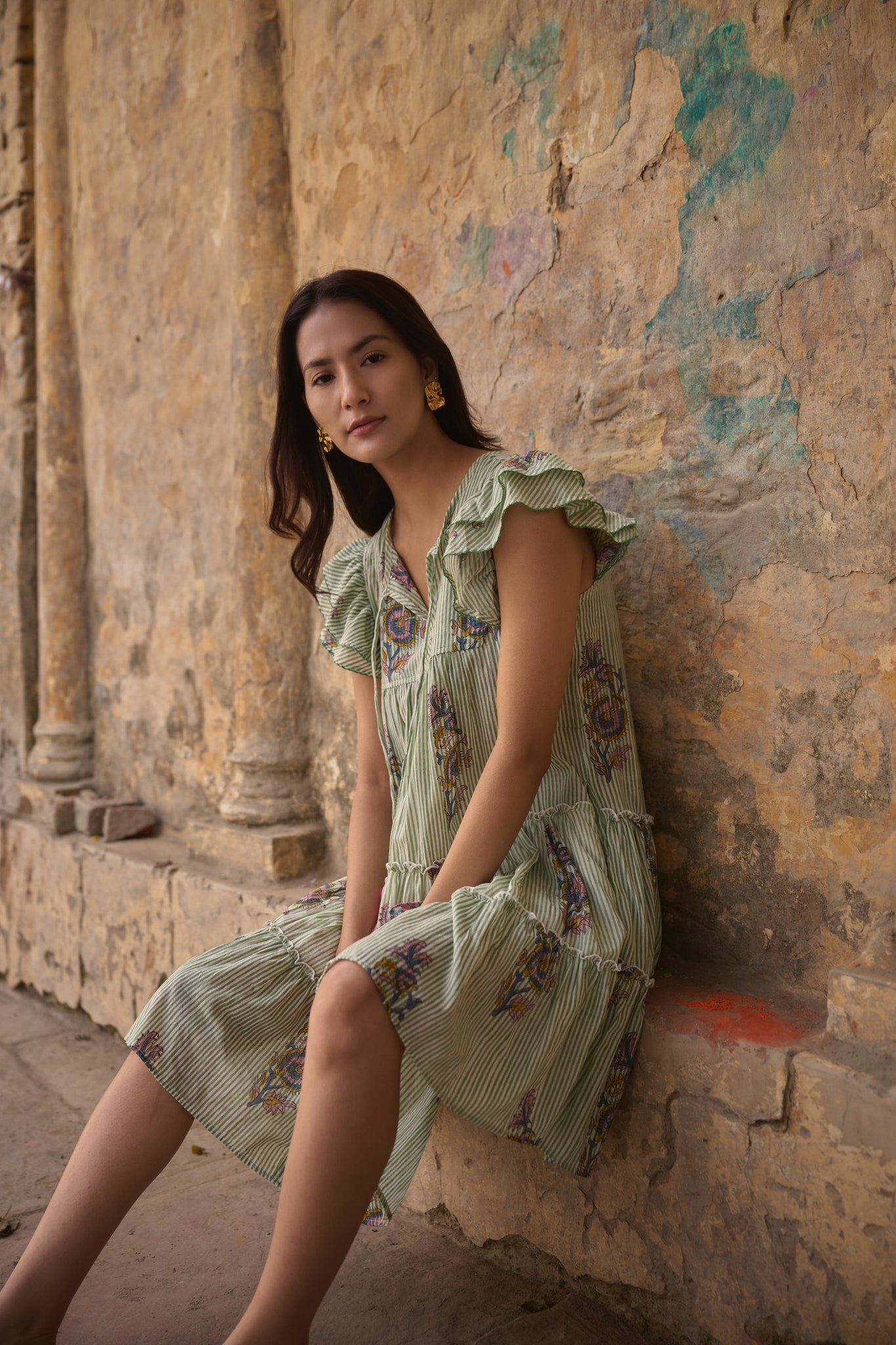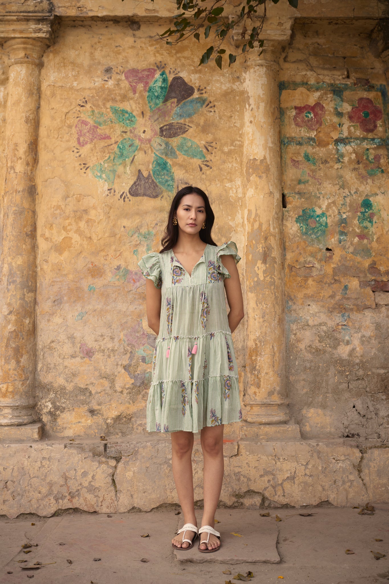The skirt is lined and has side pockets. Made in 100% cotton with handmade tassels ... yet another breakfast to dinner dress!