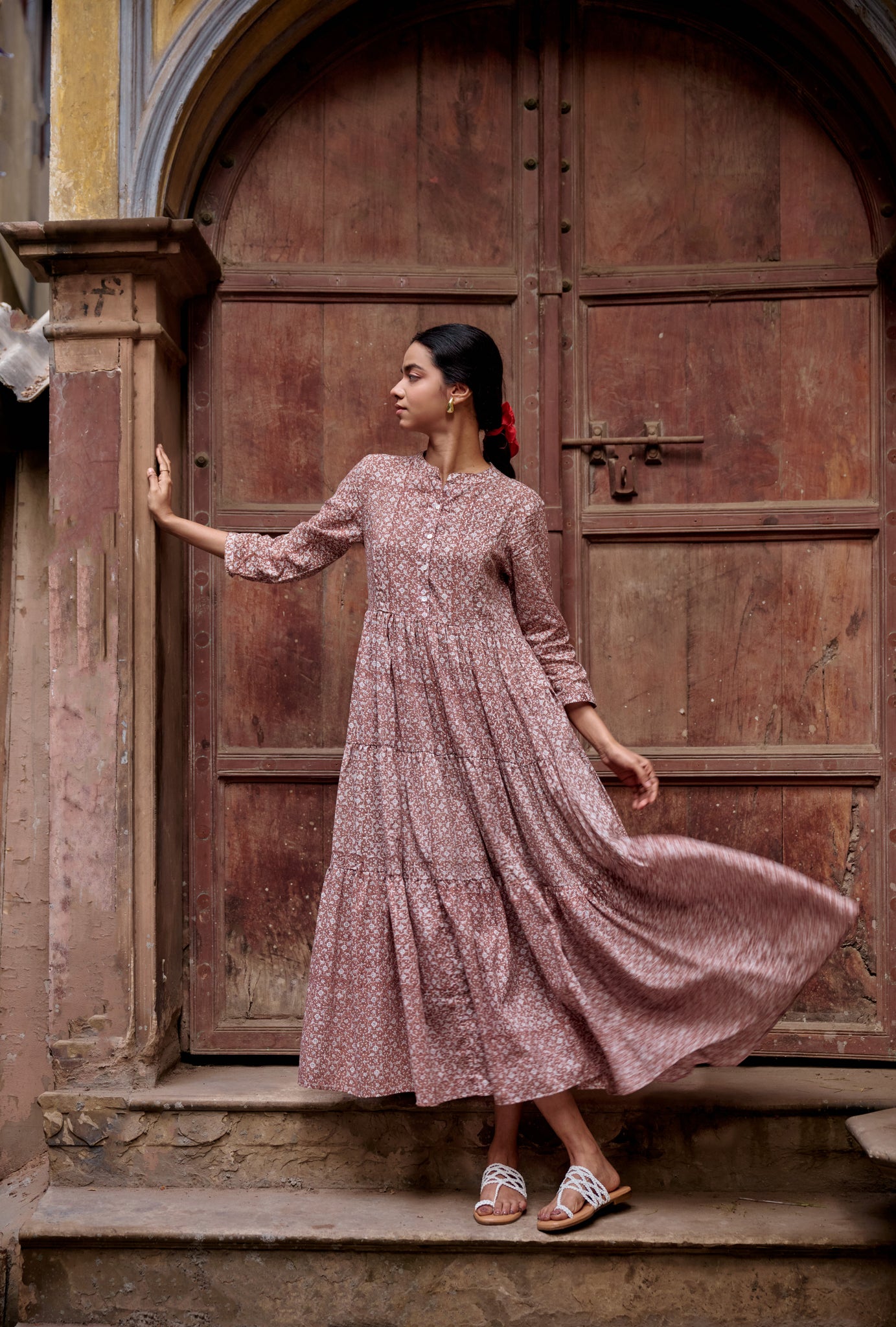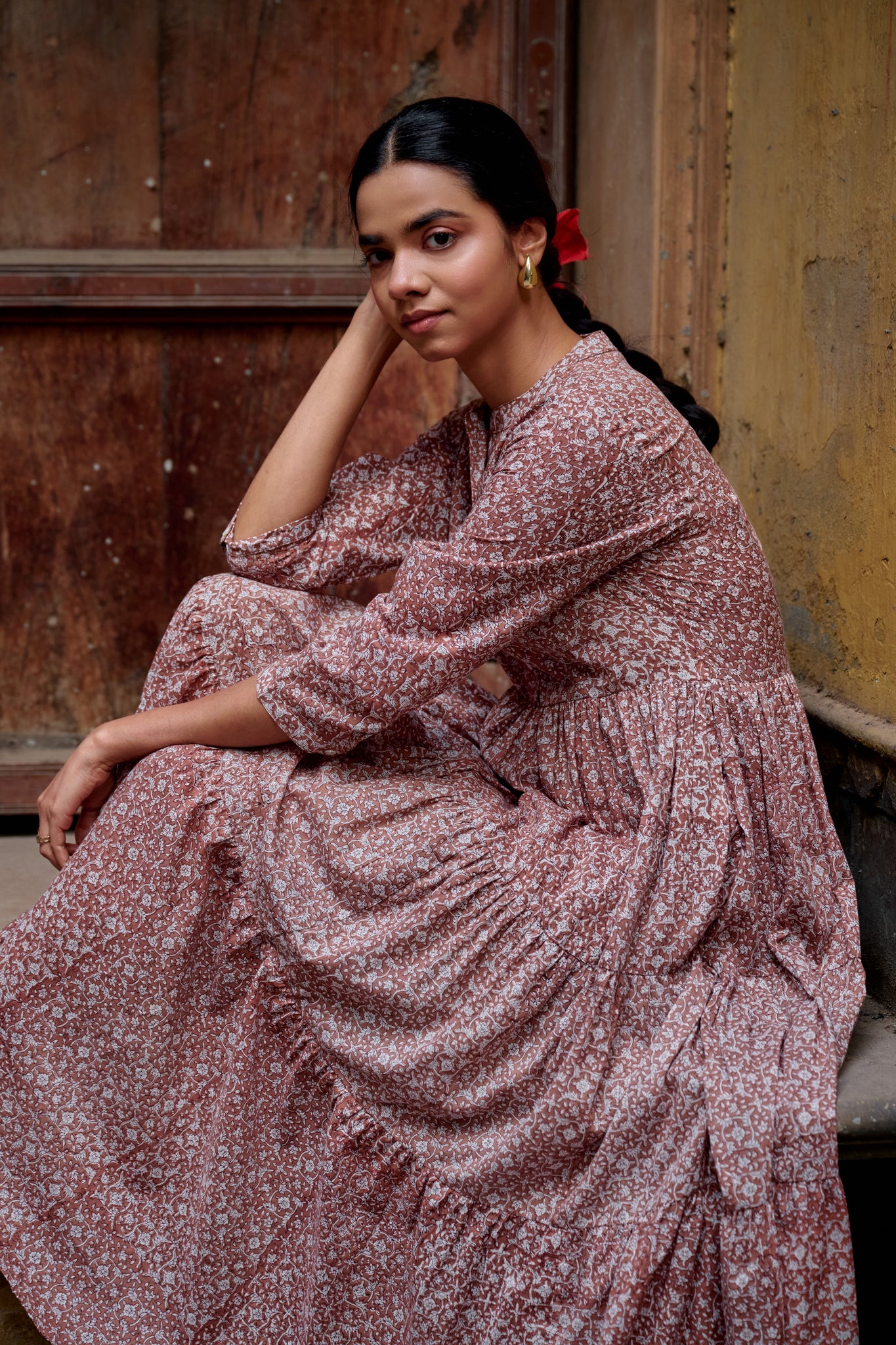 DISCLAIMER - Easy breezy summer dress in a beautiful brown and white floral. super soft , perfect for the all day long look.