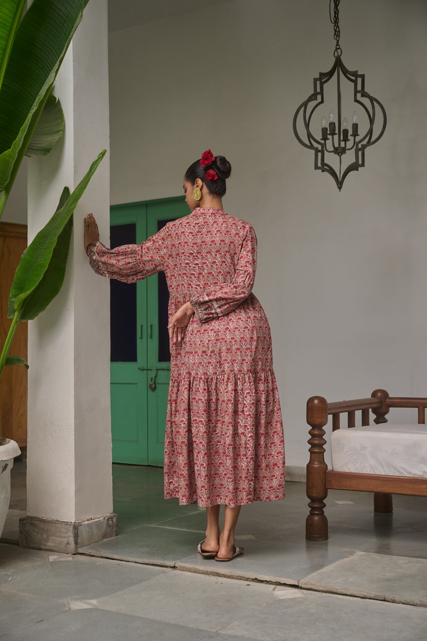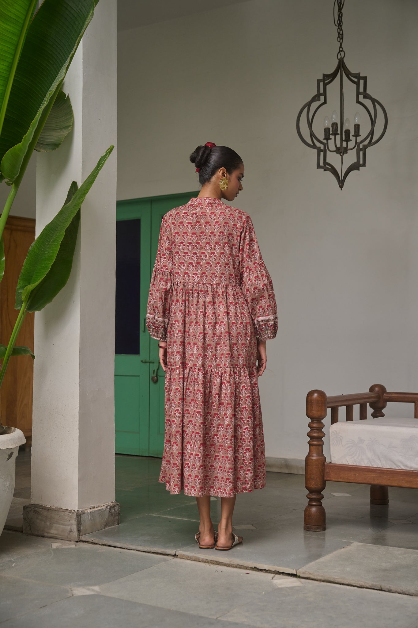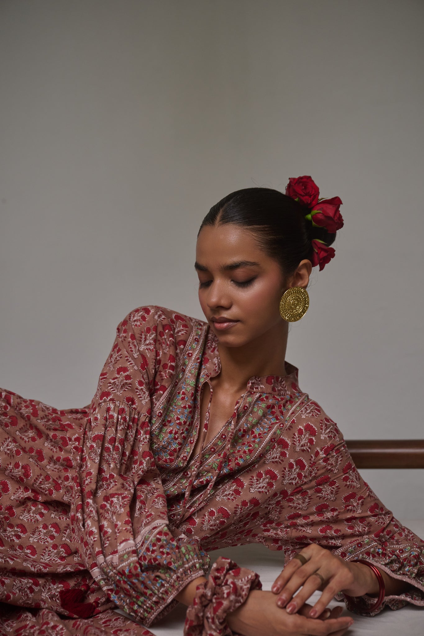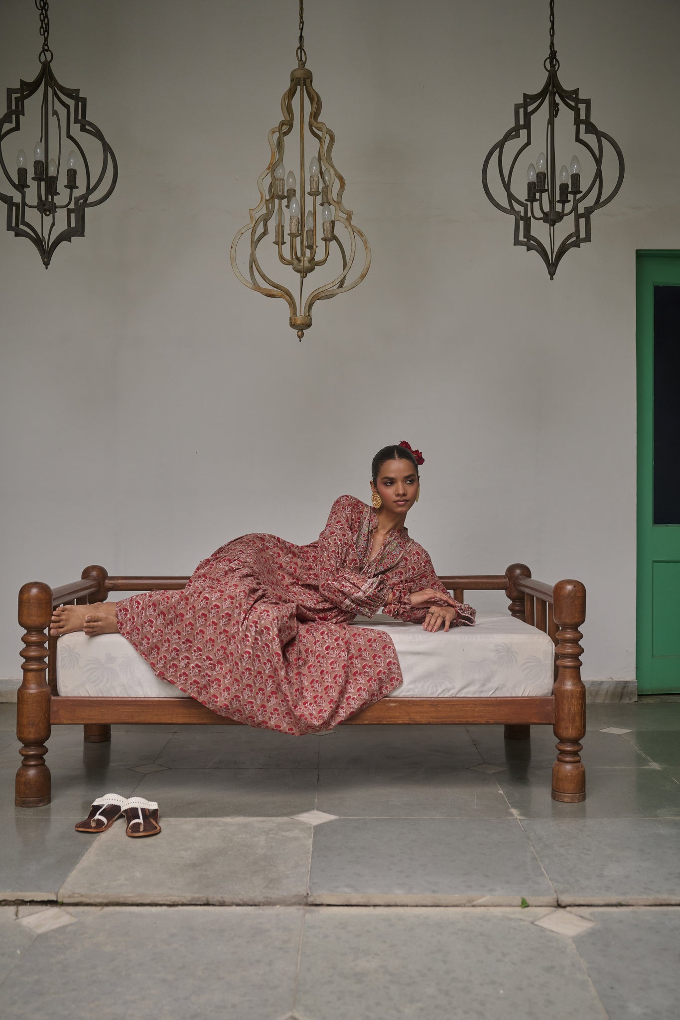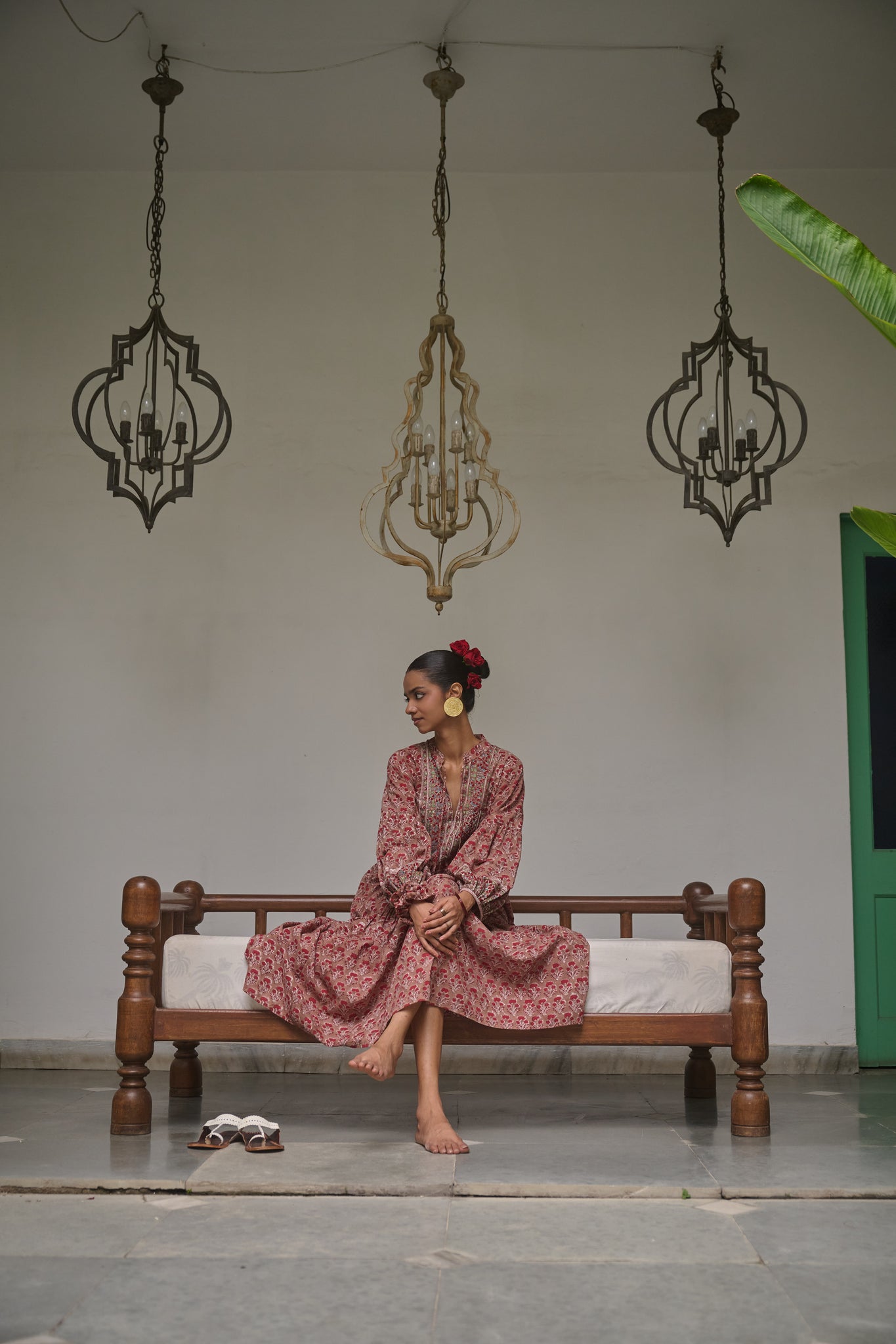 Easy breezy super soft cotton maxi - block printed by hand. Tassel ties at front. Pockets at side seam.
