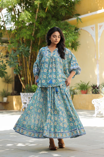 the BASIC sleeveless shirt - turquoise blue with pink butis