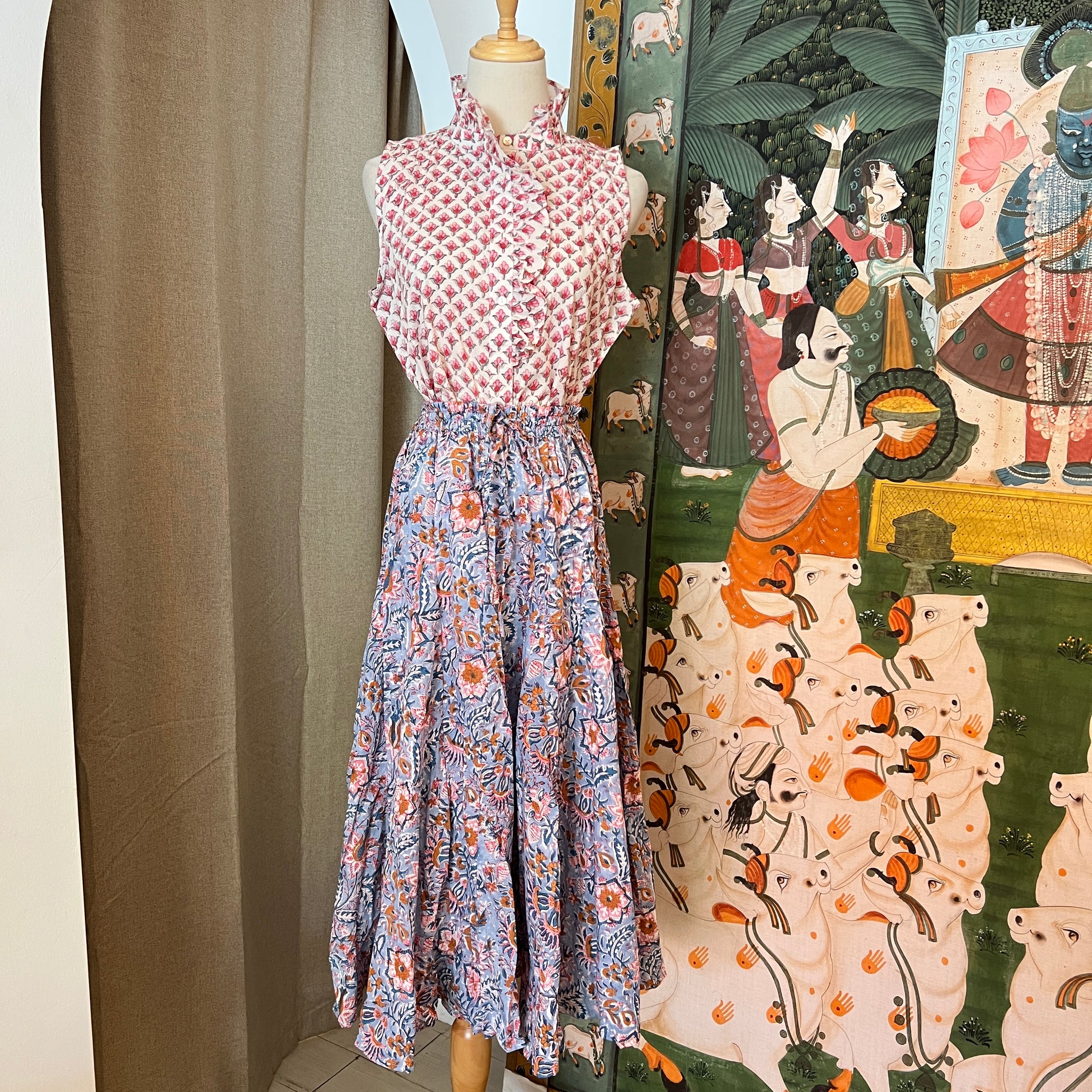 - hand block printed
