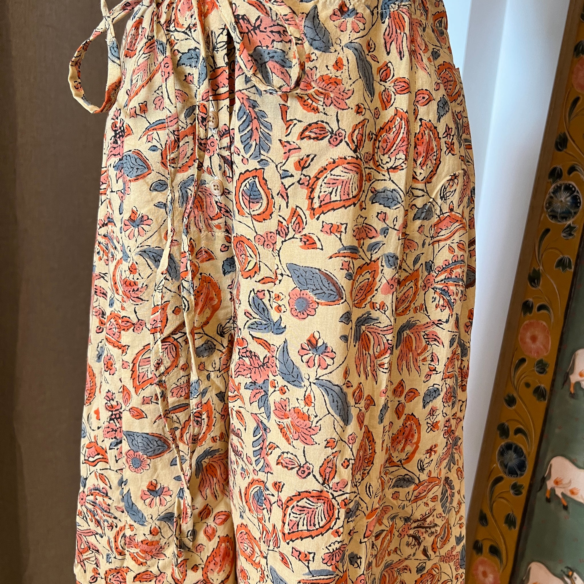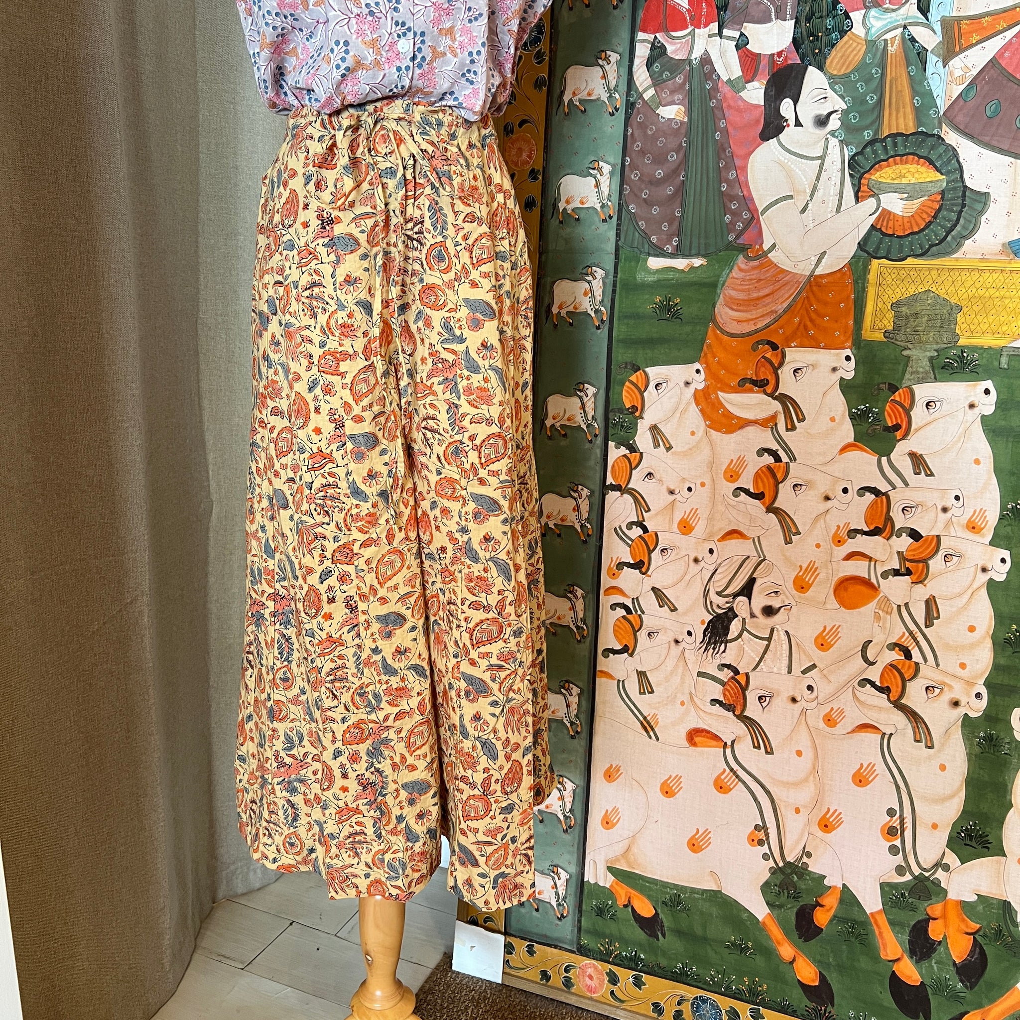 Our new flared pants - the RHUBARB pants - these are super comfortable culottes, panelled, drawstrings at the waist and has pockets. Made in soft blockprinted cotton, perfect pants for the summers!