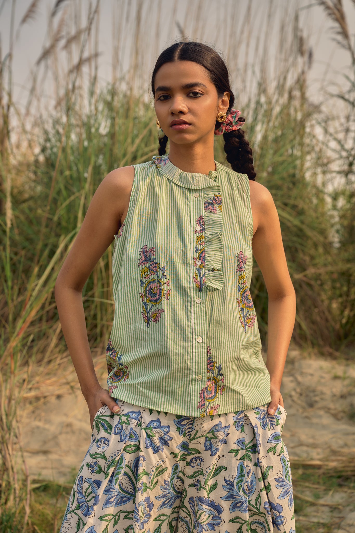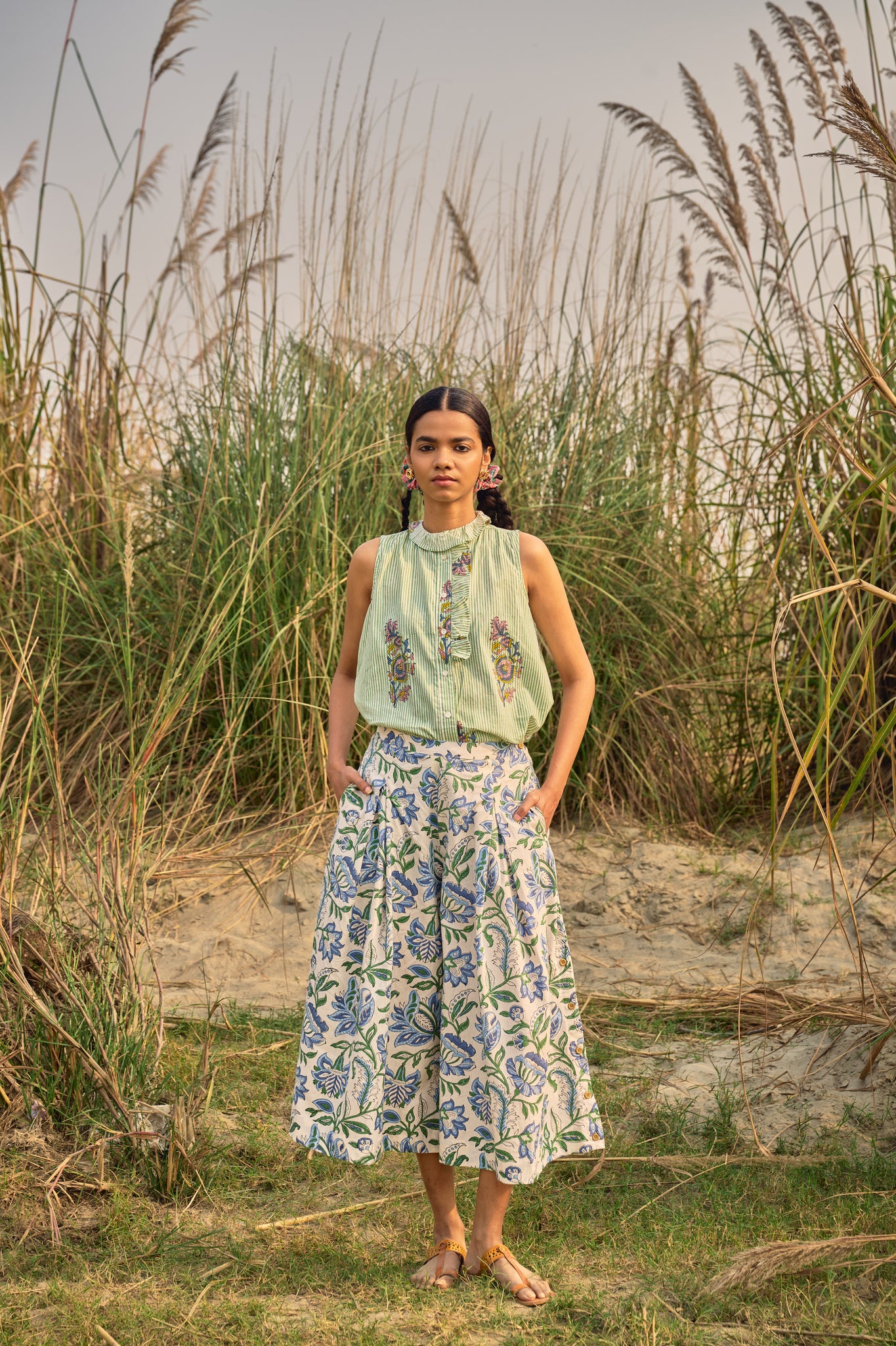 Our new pleated pants - the GINGER pants - these are super comfortable pants, side zipper at the waist and has pockets. Made in poplin blockprinted cotton, perfect pants for the summers!