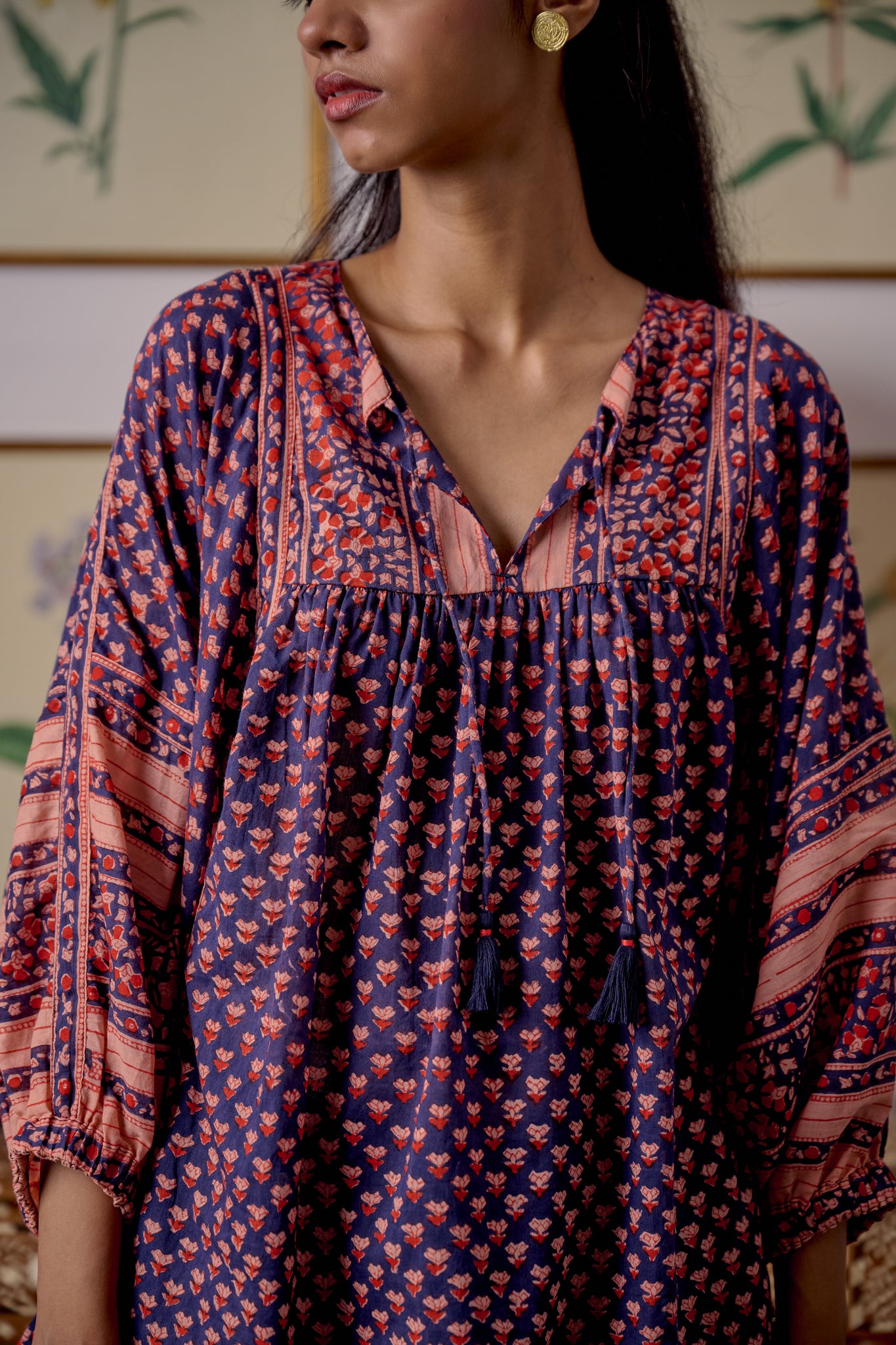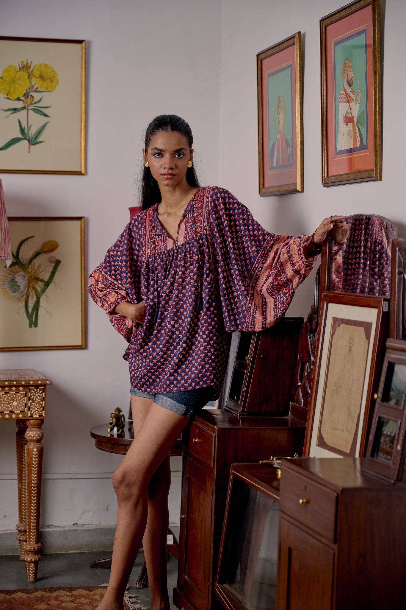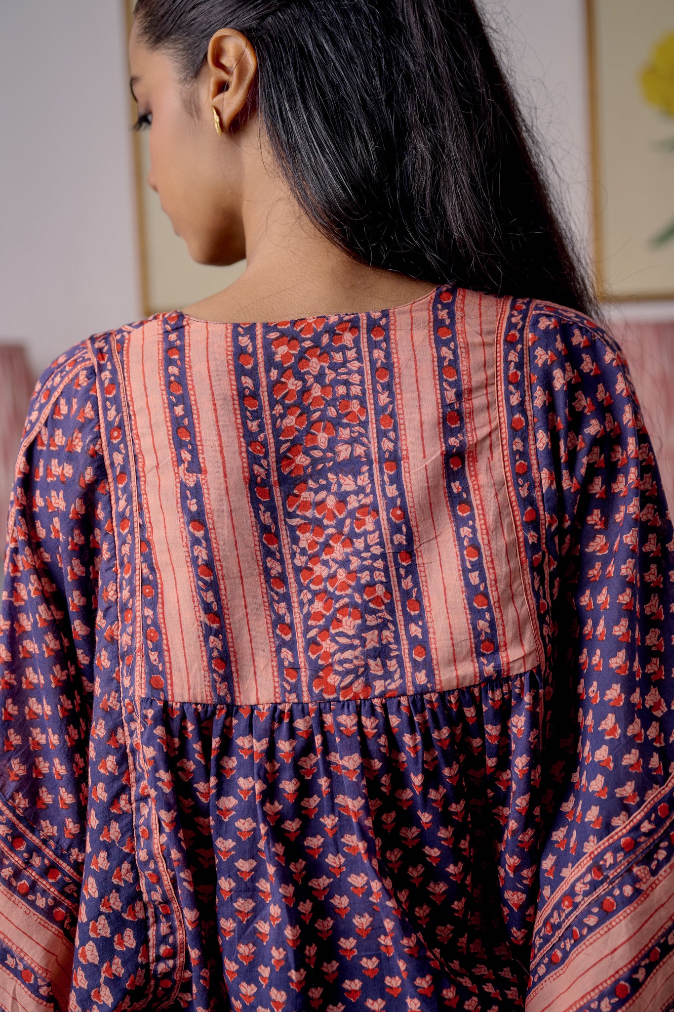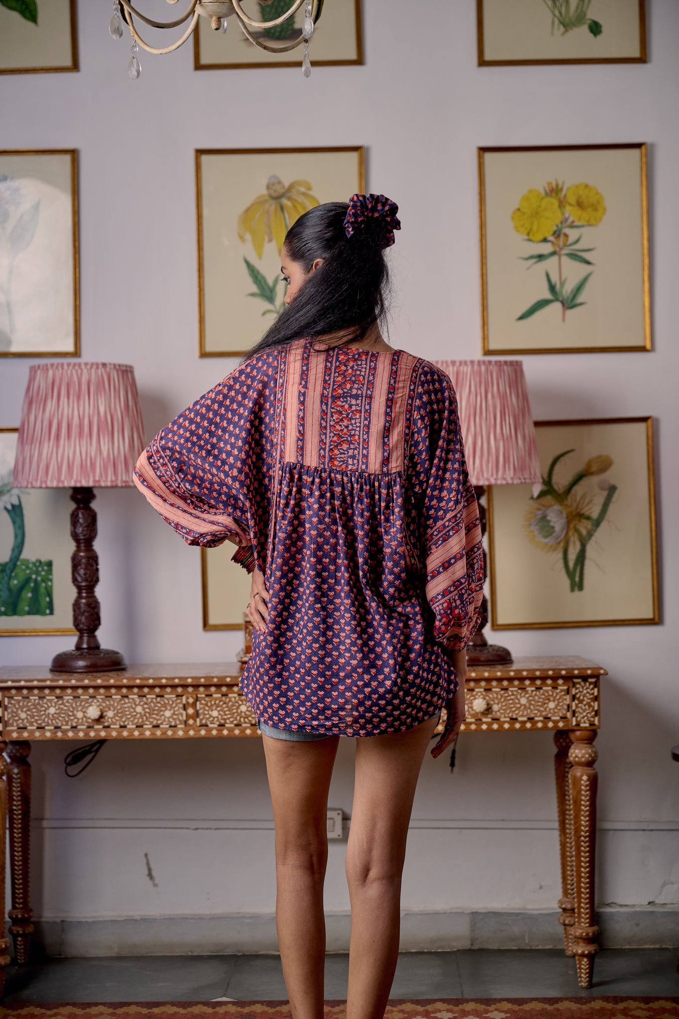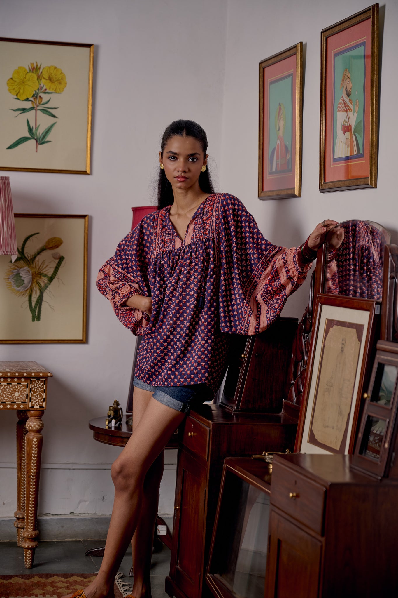 Hand block printed boho top. Balloon sleeves, boho fit, tassels and yoke. Highly recommended to try this in store!!