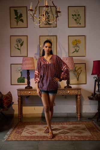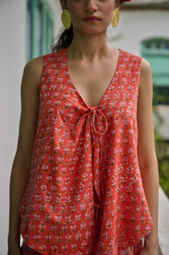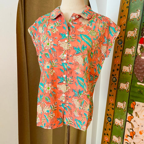 the BASIC sleeveless shirt - turquoise blue with pink butis